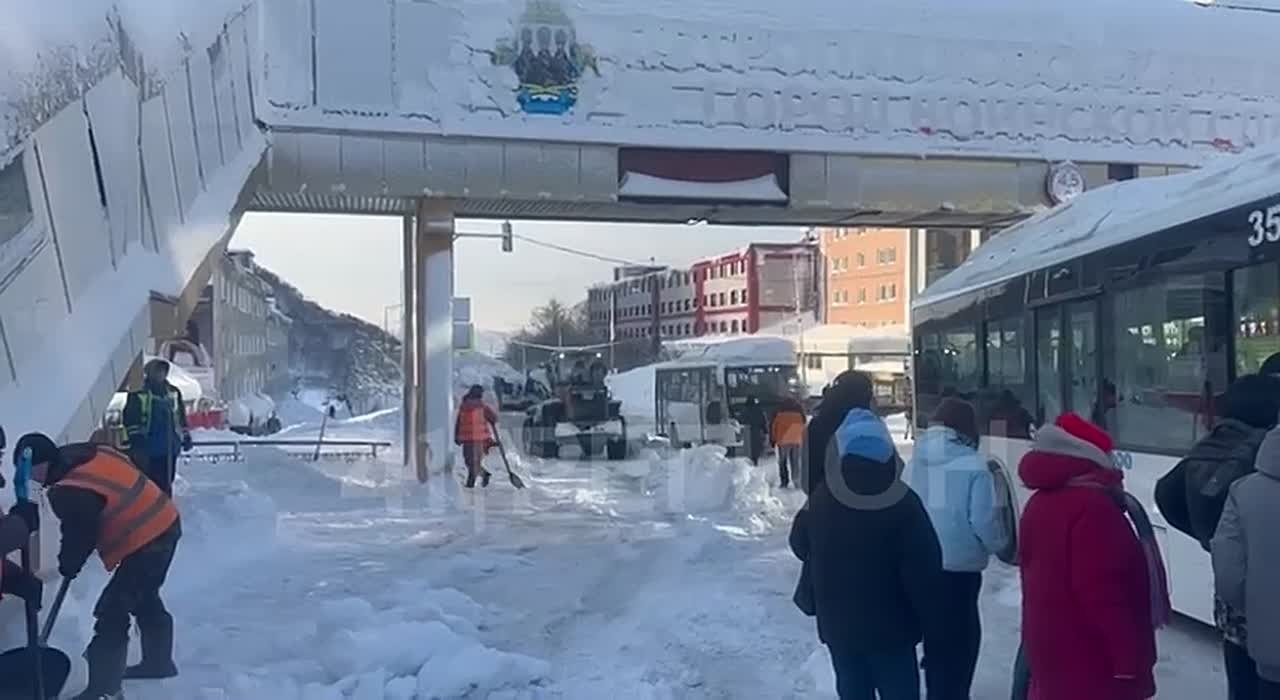 Об этом сообщает редакция «41 Региона». Прямо сейчас на участке расширяют дорожный проезд. Бригады ручного труда расчищают остановку. А на крыше близлежащего дома специалисты «управляек» без страховки убирают снег.