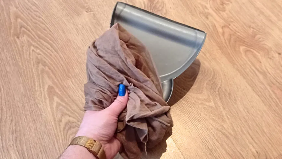 - Вооружитесь простыми инструментами, такими как пластиковый совок с резиновой кромкой и старые капроновые колготки.