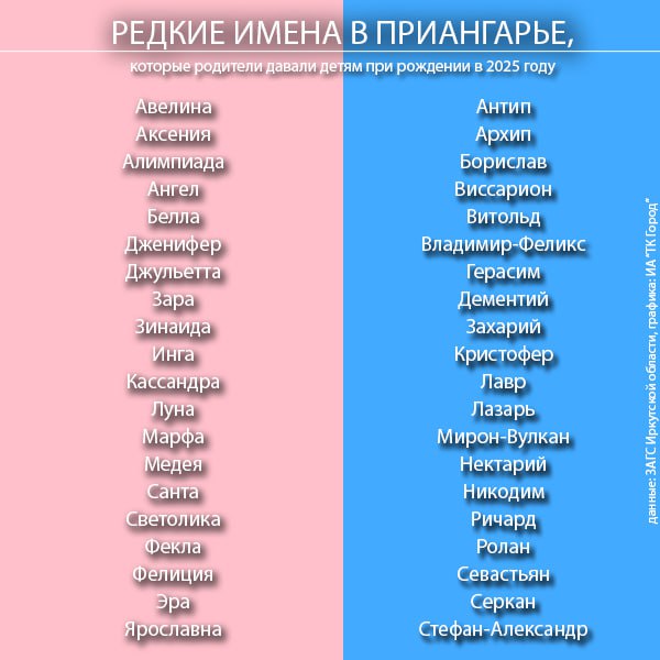 Луна, Ангел, Медея, Эра и Мирон-Вулкан: служба ЗАГС Иркутской области привела примеры редких имен, которые в регионе дают родители при рождении детей.