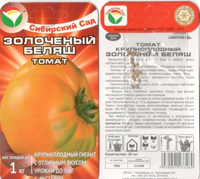 «Золоченый беляш» — это не просто гибрид, а настоящий сорт, что является важным фактором для садоводов. Семена, собранные с собственных плодов, сохраняют все сортовые признаки, что позволяет производить посадочный материал для следующих сезонов.