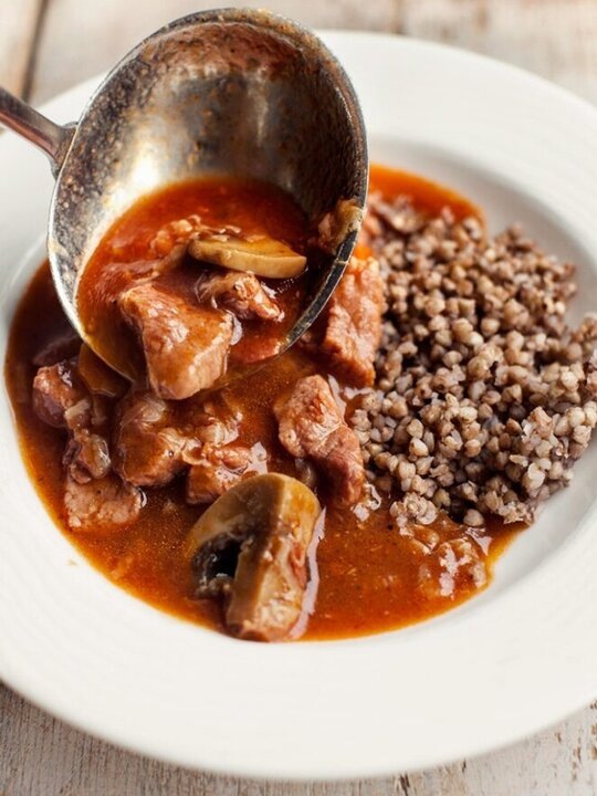 При приготовлении гуляша важен уровень жидкости. Избегайте чрезмерного количества бульона или воды. Мясо должно быть покрыто жидкостью только наполовину, чтобы тепло распределялось равномерно и не выталкивало сок из мяса. Ведь чем меньше жидкости, тем меньше мясного сока уйдет в бульон. Это одно из главных правил, которые часто забывают при приготовлении. В результате ваша говядина станет более насыщенной, а вкус – выраженным.