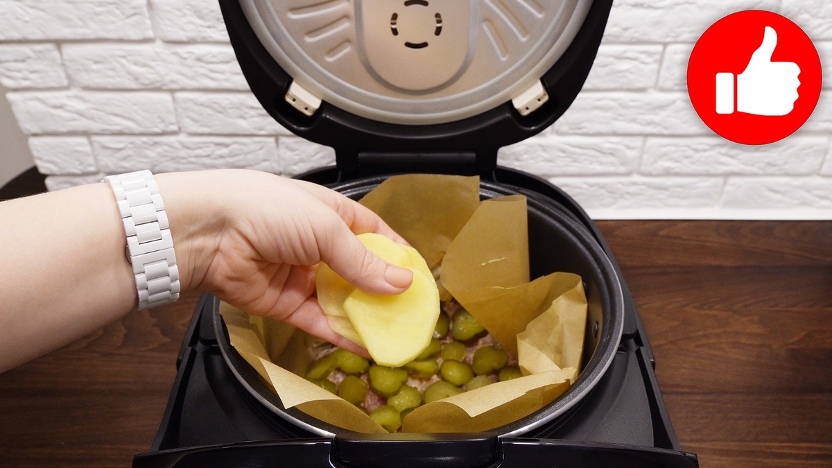 Для начала следует замариновать курицу. Необходимо смешать ее с 0,5 ч.л. соли, 1/3 ч.л. молотого перца, 1 ч.л. майонеза и горчицу. Затем на дно чаши мультиварки размещается бумага для выпечки. На нее выкладывают курицу, далее — слой нарезанных огурцов, картофеля и специй, помидоры, оставшийся майонез и натертый сыр.