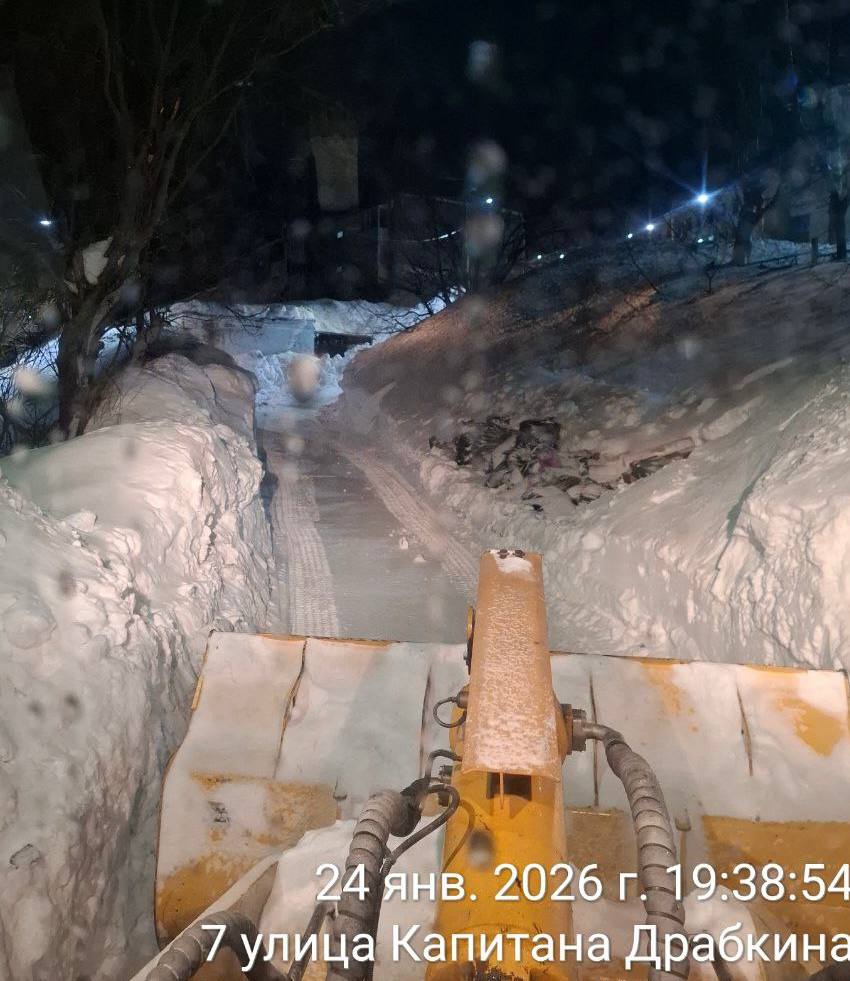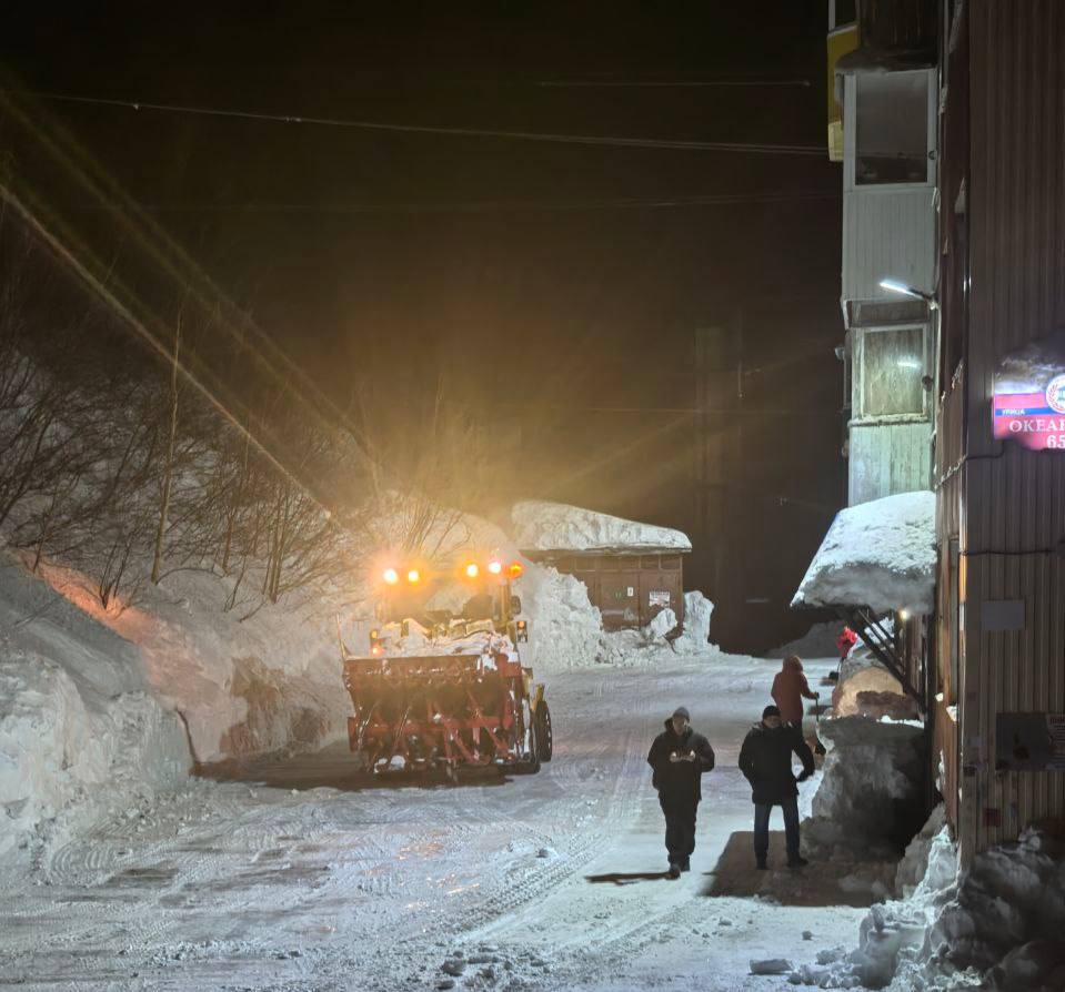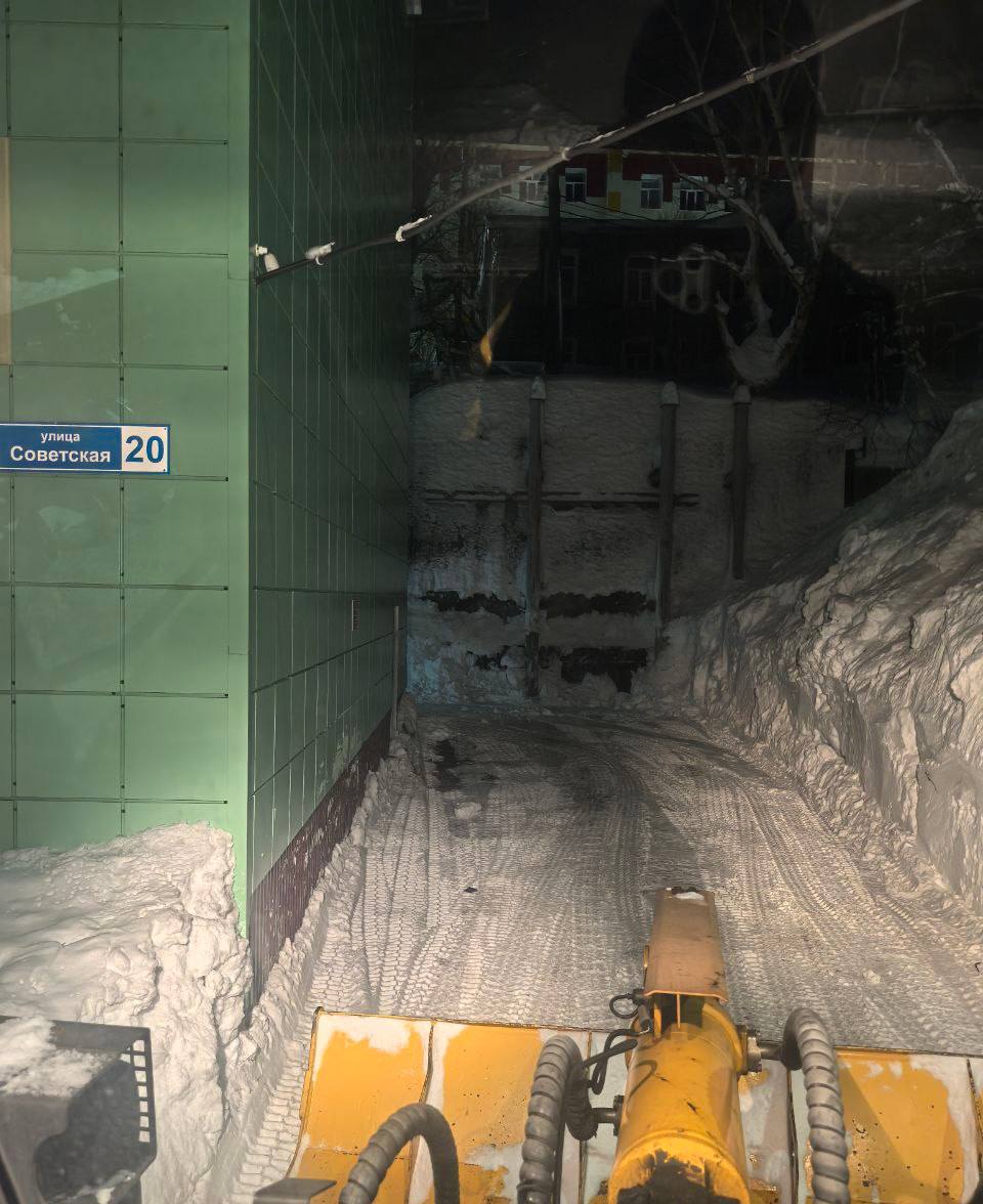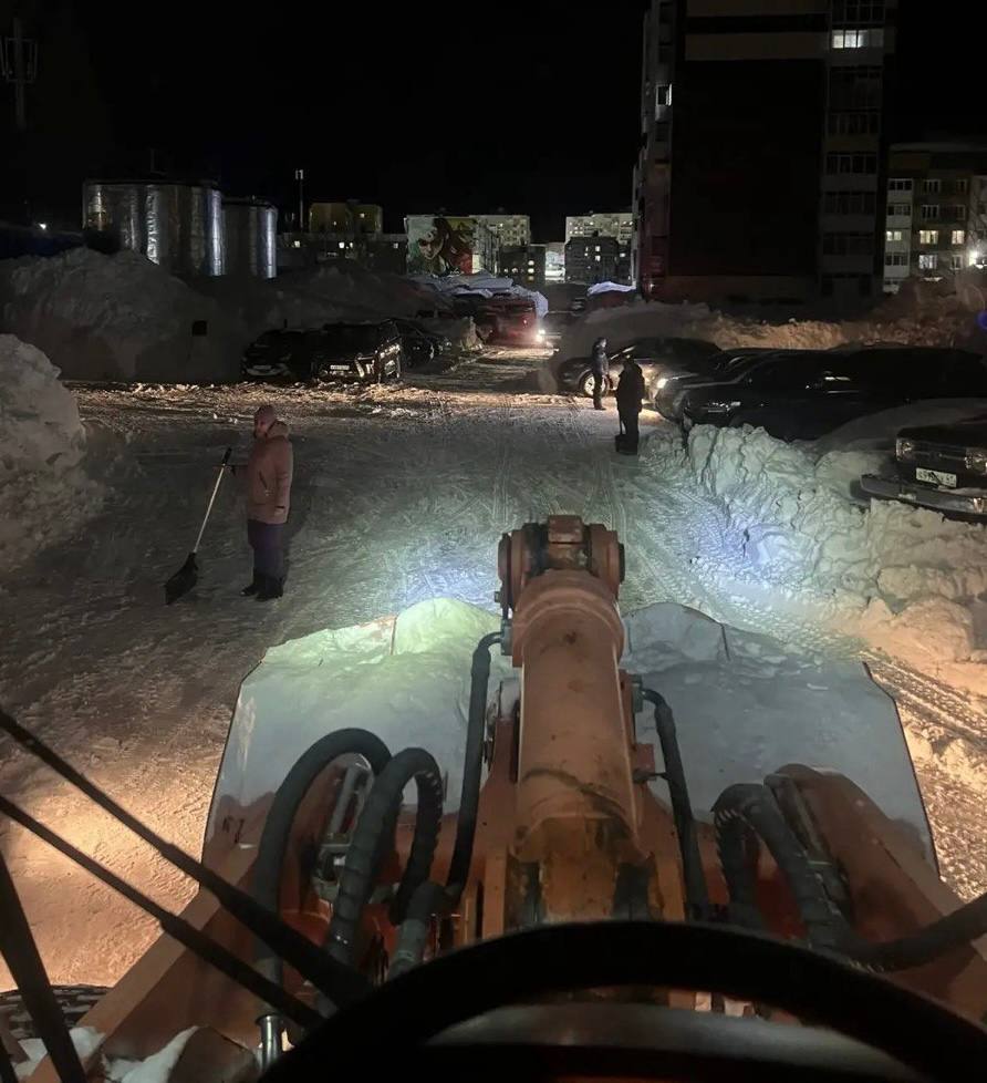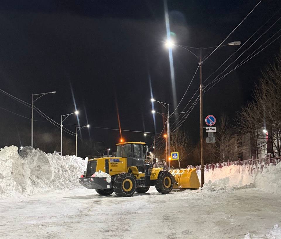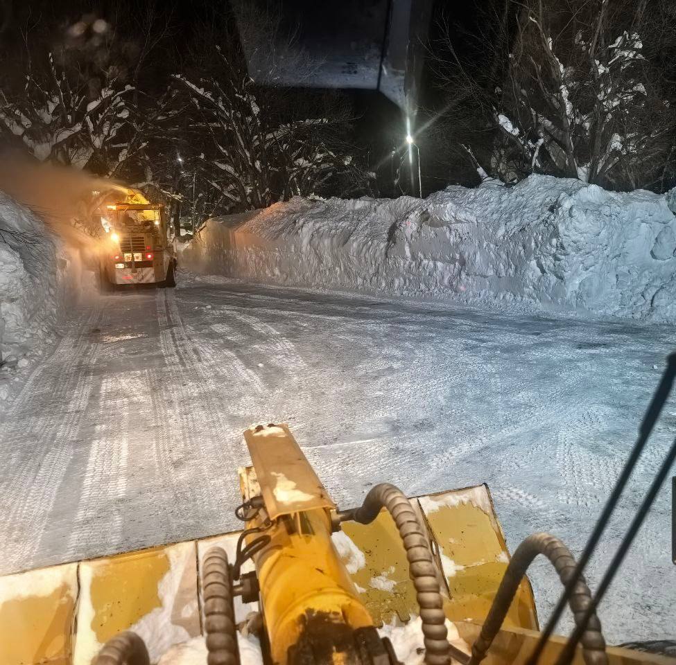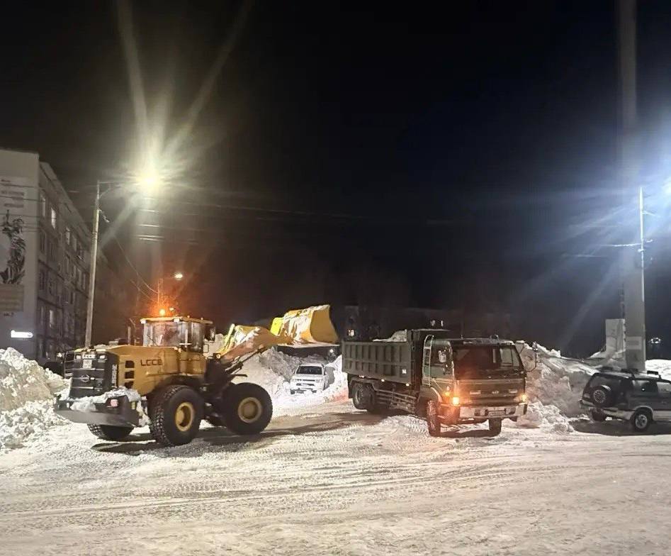 В ночную смену подрядные организации продолжили работы по расчистке проездов и вывозу снежных масс.