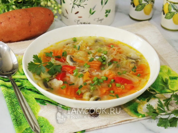 Лёгкий, яркий и дымчатый по вкусу — такой суп держит баланс между овощной свежестью и поддержкой соревновательного дня. Рис добавляет умеренную сытность без перегруза товарной водой.