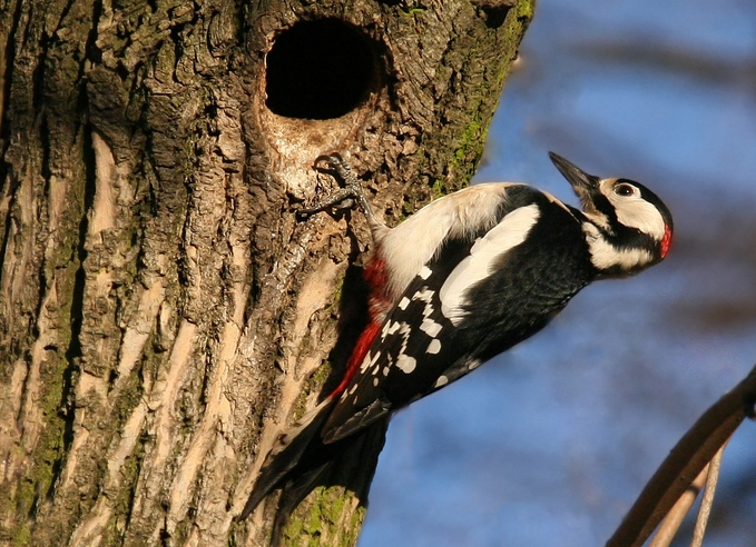 Когда вредная работа завершена, дятлы выходят на финишную прямую, формируя идеальные дупла из уже размягчённой древесины и очищая их от личинок.