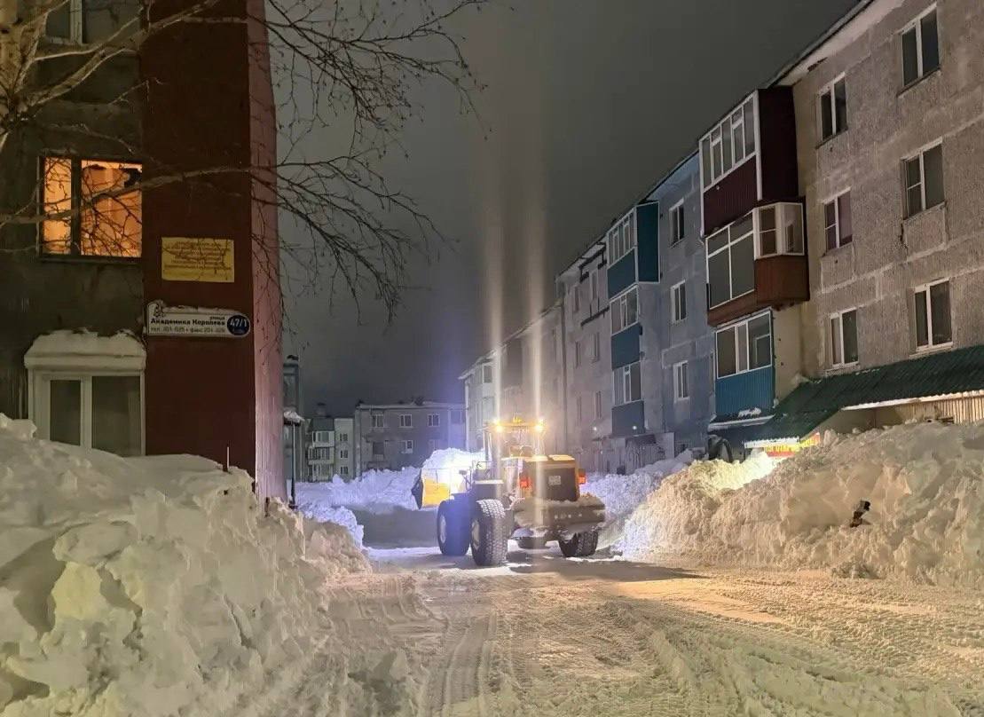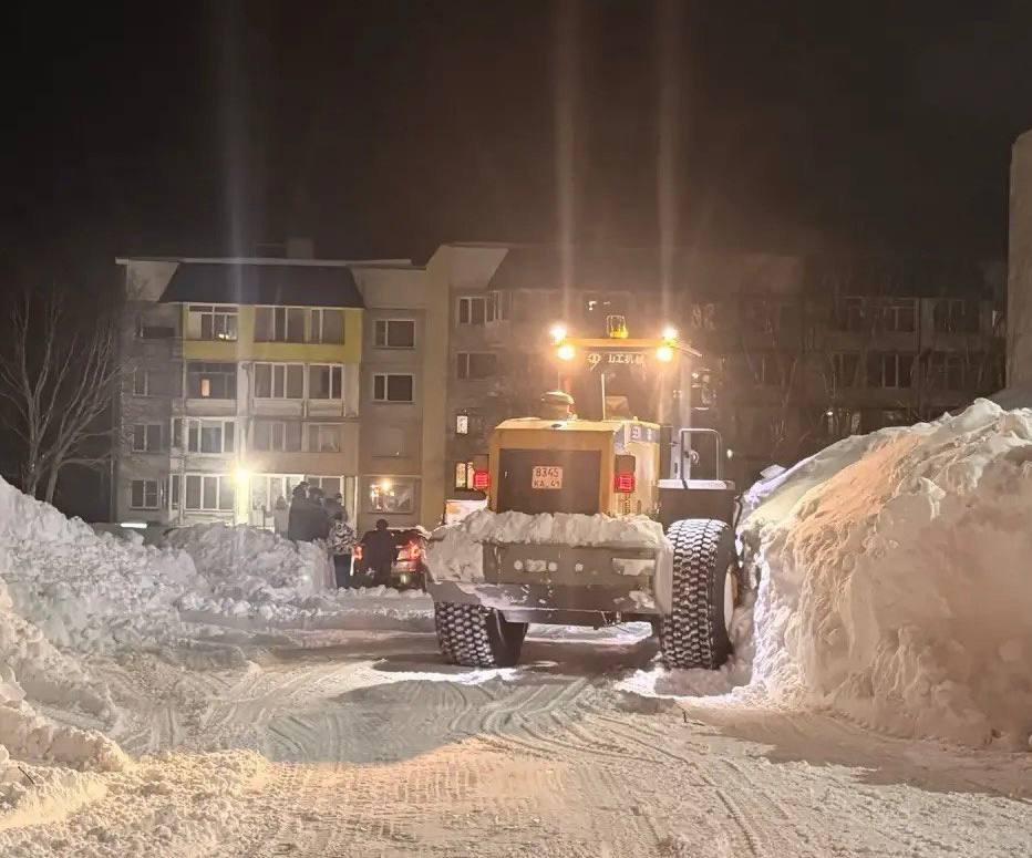 В ночную смену снегоуборочная техника продолжила работать над городских проездах.