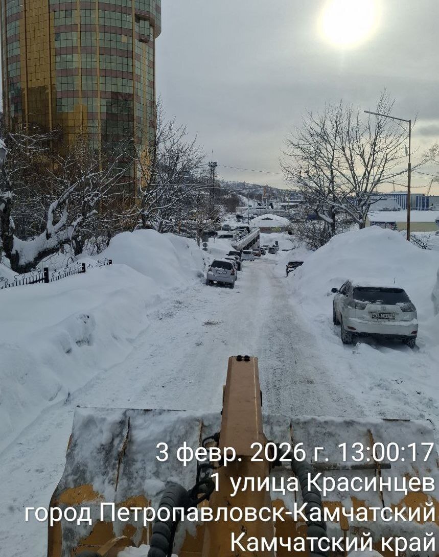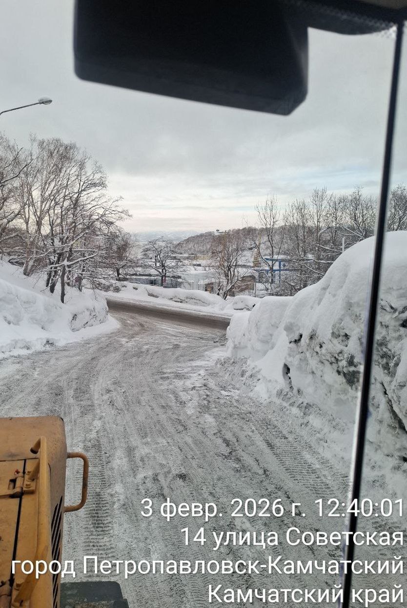Город день за днем. 3 февраля 2026 года В ПетропавловскеКамчатском дорожные службы в круглосуточном режиме ведут работы по расчистке городских территорий