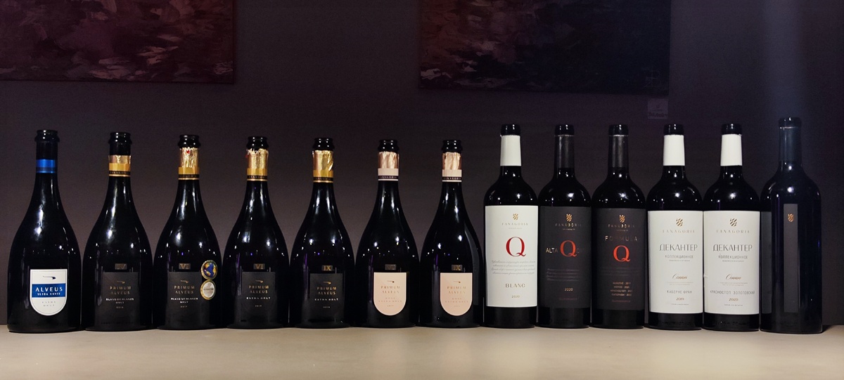 Однако Фанагория это не только Точка. С площадью виноградников в 4500 гектаров и производством 30 миллионов бутылок в год, на дегустации были представлены и другие вина: