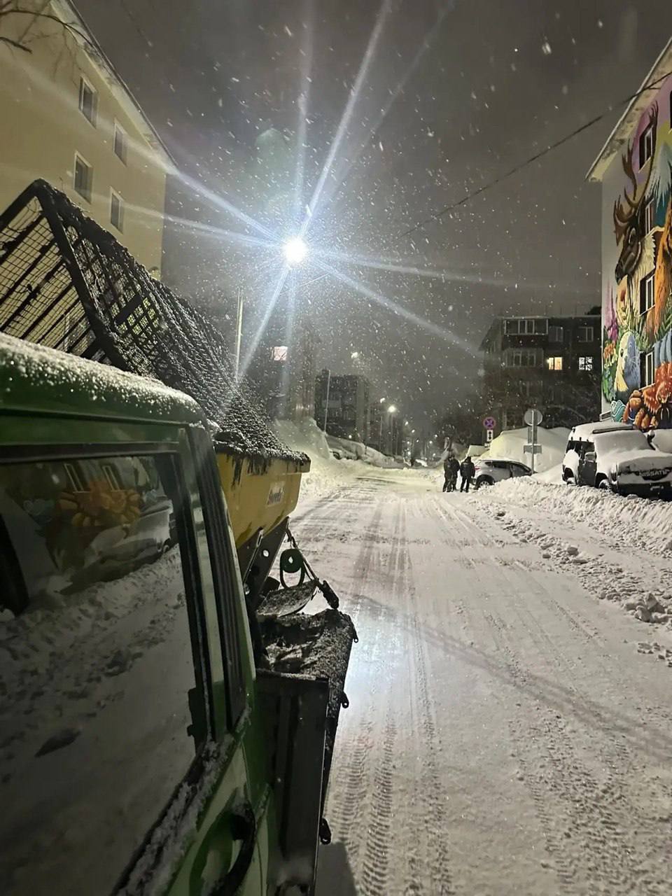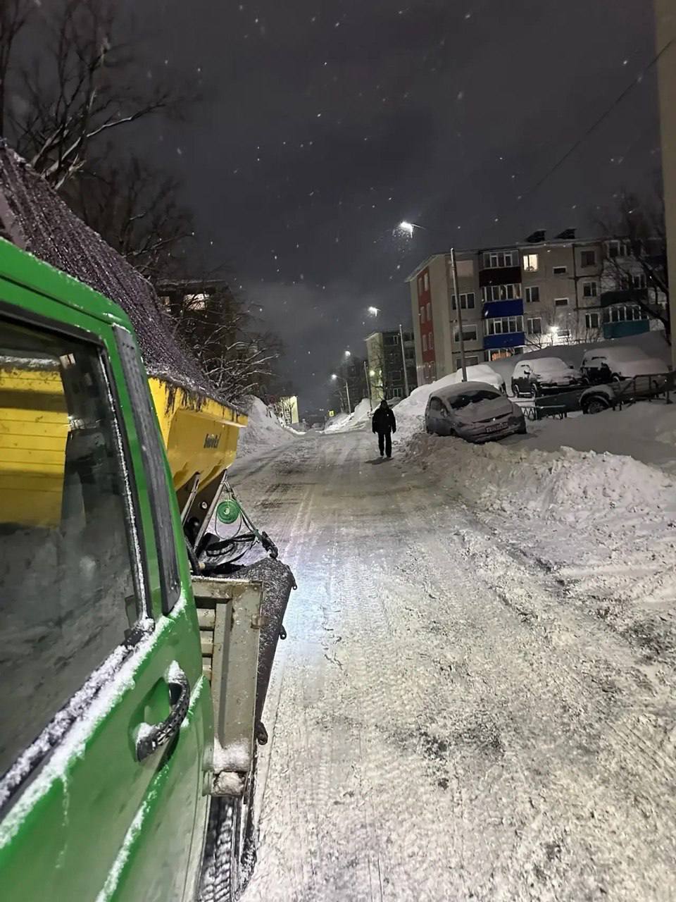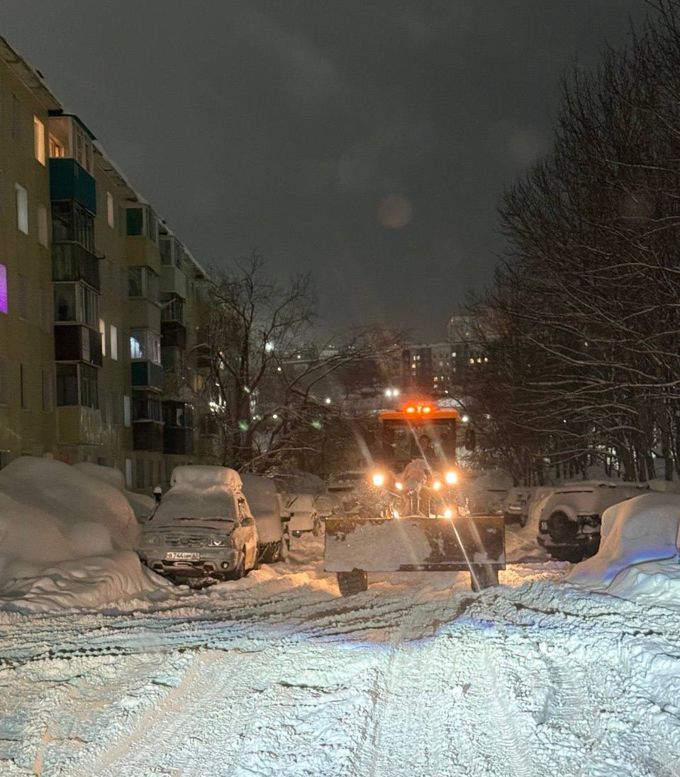 В ночную смену снегоуборочная техника продолжила работать на городских проездах.