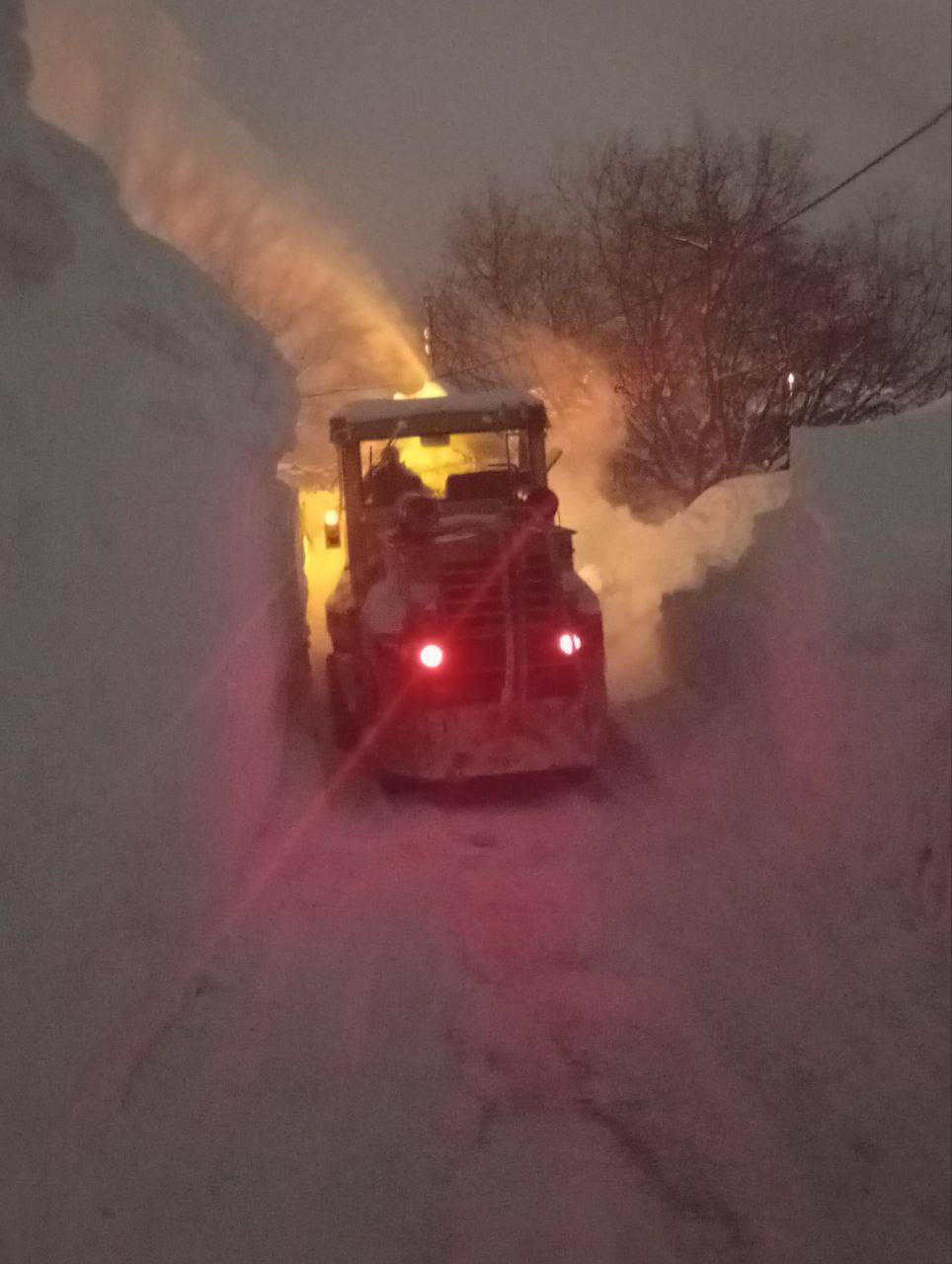 В ночную смену снегоуборочная техника продолжила работать на городских проездах