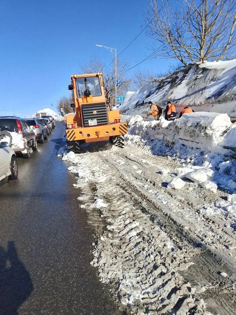 В Петропавловске-Камчатском продолжаются работы по снегорасчистке.