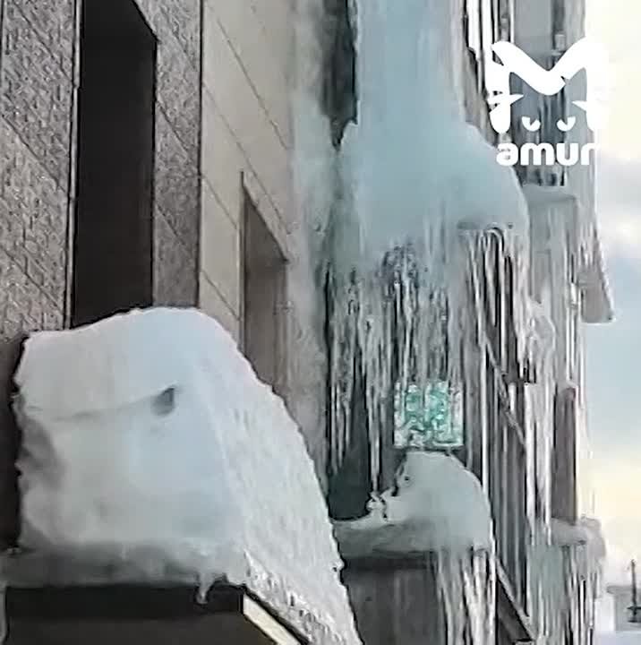 Сосулька в три этажа нависла над подъездом в Петропавловске-Камчатском.