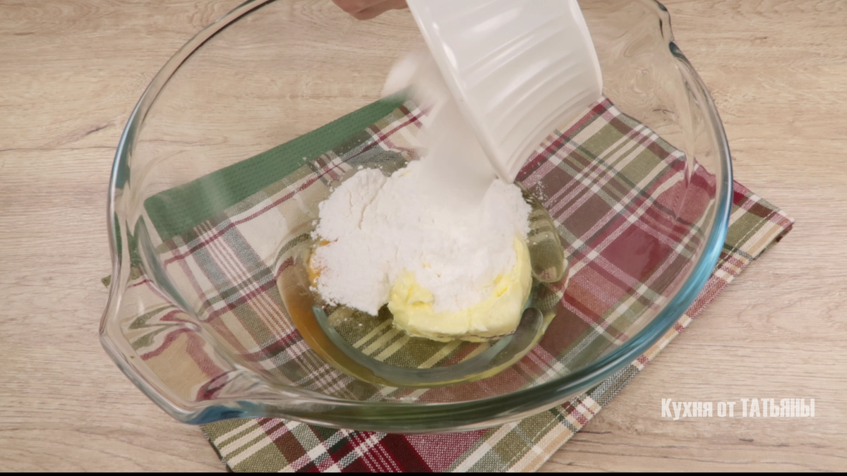 Первоначально следует разбить яйцо и добавить к нему сливочное и растительное масла, сахарную пудру, ванильный сахар и немного соли. Все продукты необходимо тщательно взбить венчиком до однородной массы. Затем в полученную смесь добавляется разрыхлитель и часть просеянной муки, после чего масса перемешивается.