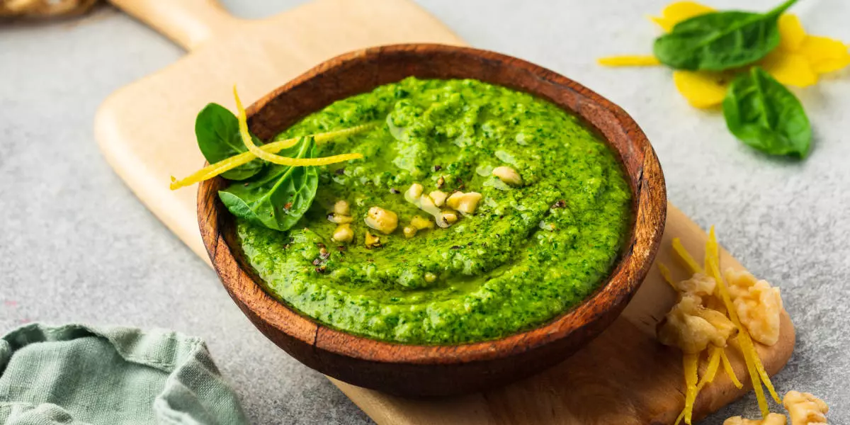 Калорийность: примерно 450–500 ккал на 100 г. Однако песто обычно используют в небольших количествах — всего ложку-две на порцию.