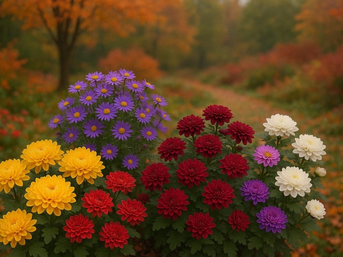 Пока многие растения теряют свое очарование, хризантемы продолжают радовать глаз. Их лепестки блестят в солнечных лучах, играя оттенками желтого, красного, оранжевого и фиолетового. Эти ароматные кустарники становятся настоящим украшением клумб и контейнеров, оставаясь во всей своей красе вплоть до первых заморозков.