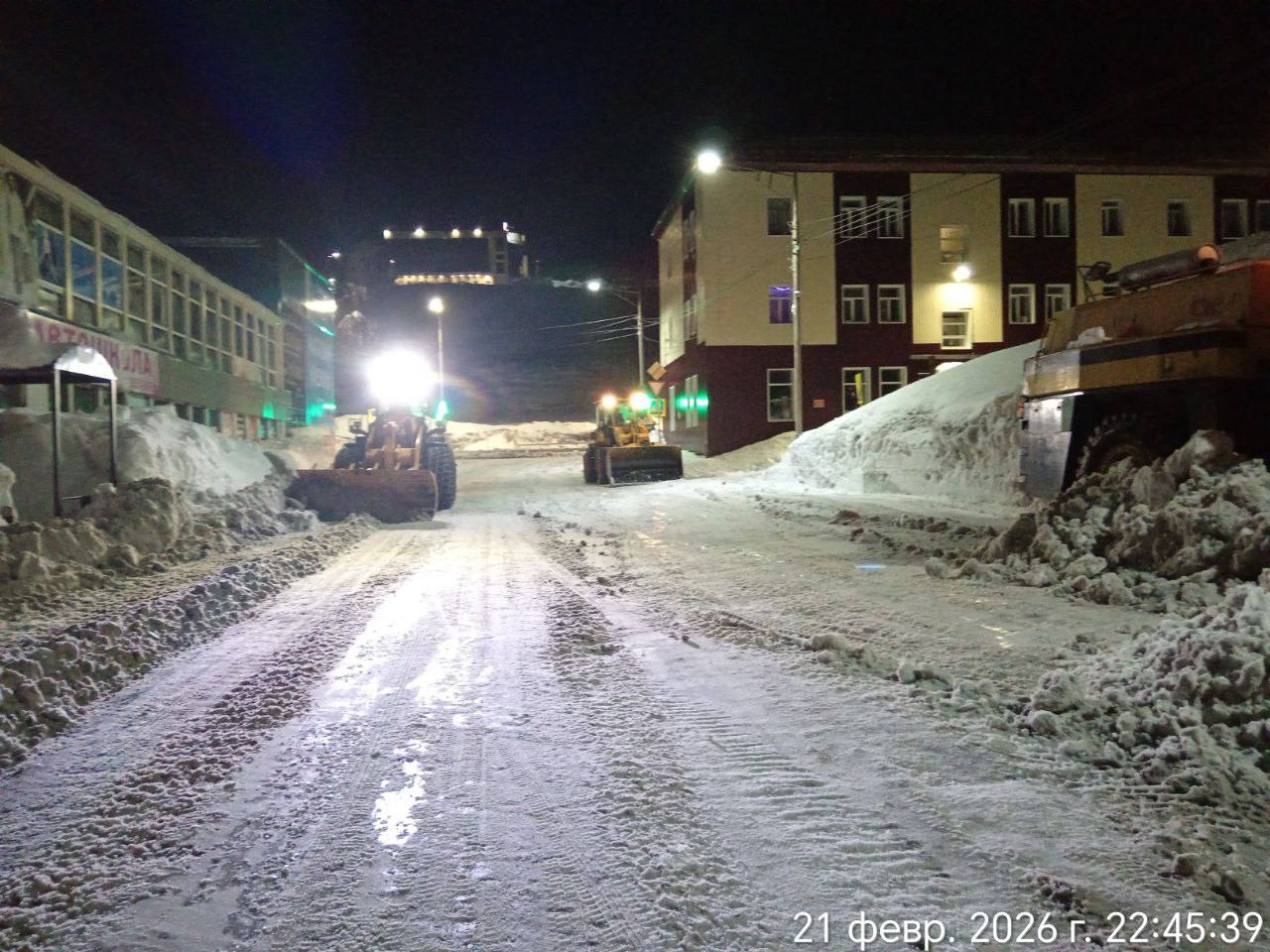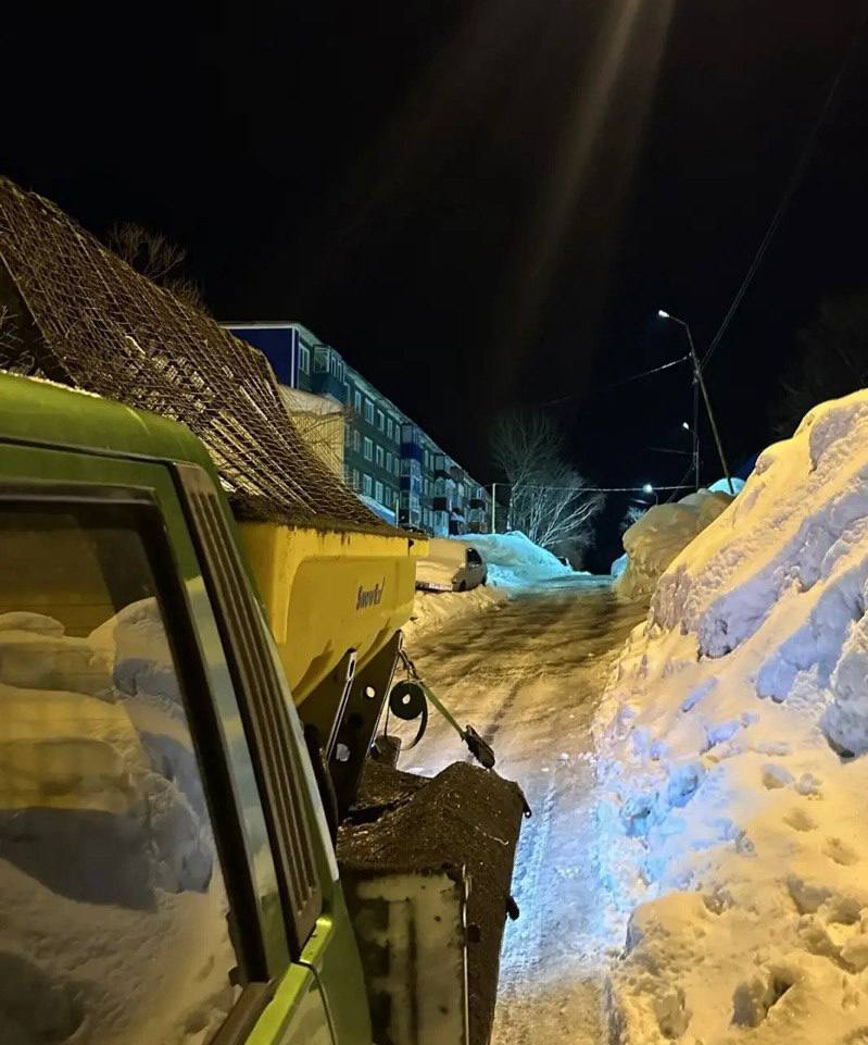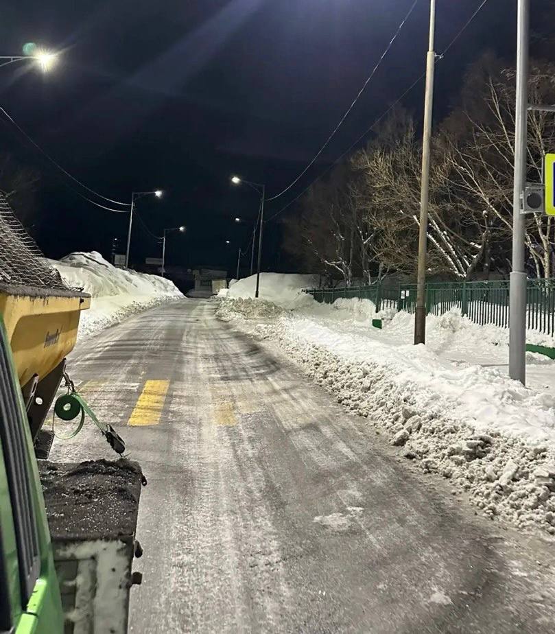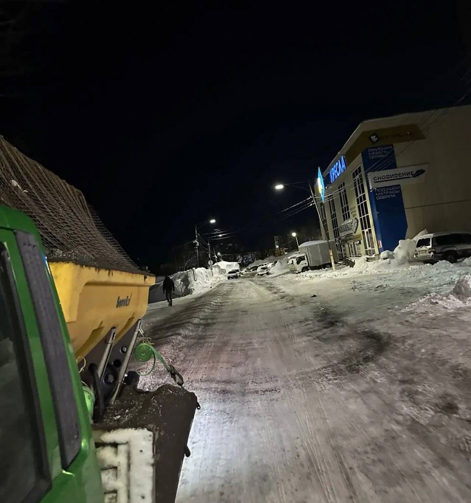 В ночную смену подрядные организации продолжили работы по расчистке и обработке городских проездов.