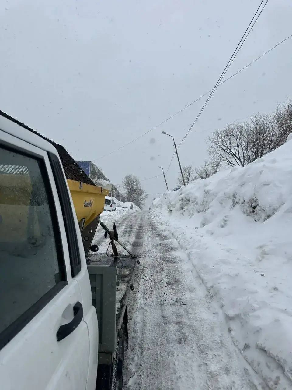 Специализированные службы осуществляют обработку дорог пескосоляной смесью, удаление снежного наката и вывоз снега.