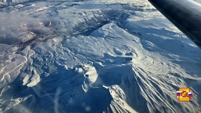 Кадрами вулканов комплекса Гамчен поделилась бригада Центра медицины катастроф. Фото сделано с борта Як-40.