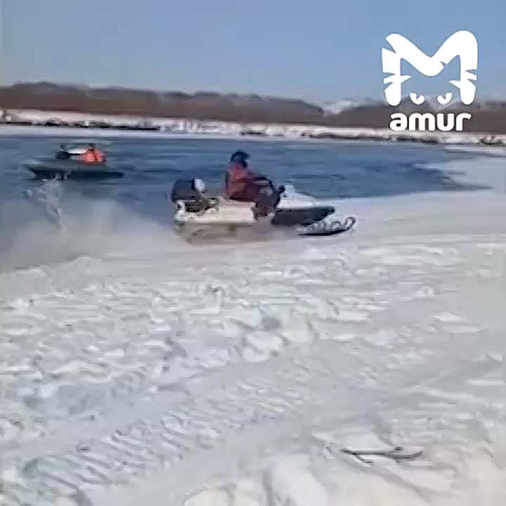 Рыбаки на снегоходах устроили водное ралли на Камчатке.