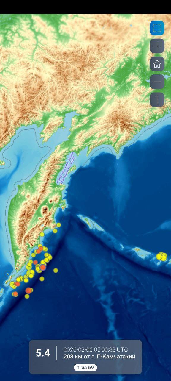Параметры землетрясений: магнитуда — в диапазоне от 3,6 до 5,6. Что касается ощутимых колебаний в ПетропавловскеКамчатском, то их количество также снизилось: с 4 событий (до 3 баллов) неделей ранее до 3 событий с силой до 2 баллов за последнюю неделю