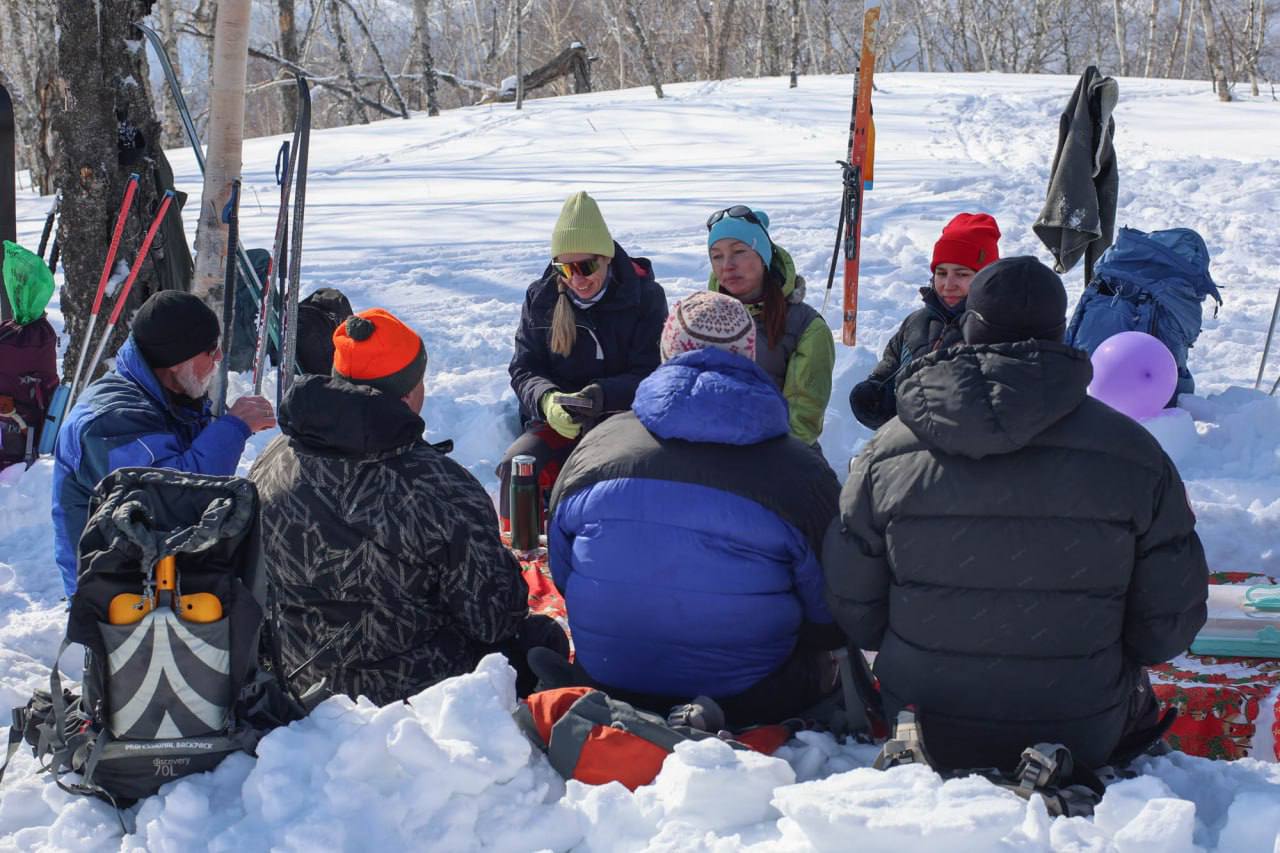 В конце пути участники собрались за импровизированным столом из снега, где шутили, делились историями и просто наслаждались дружеской атмосферой.
