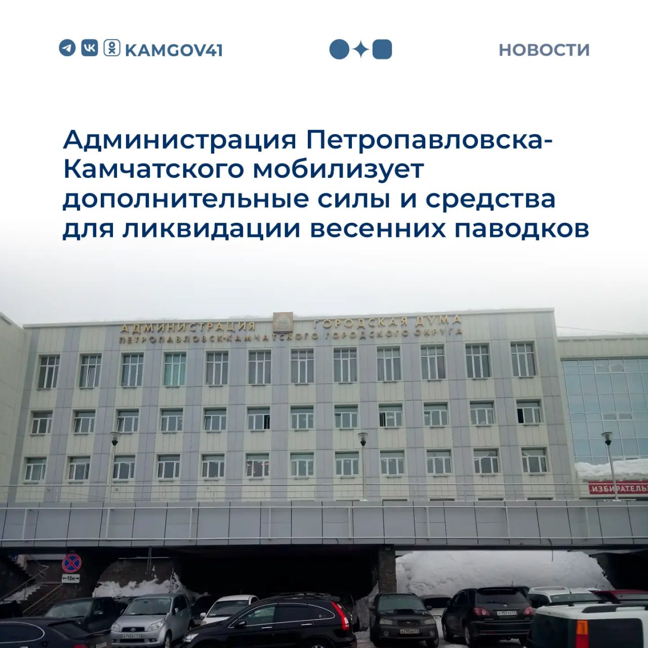 Администрация Петропавловска-Камчатского задействует дополнительную спецтехнику для отвода талых вод.
