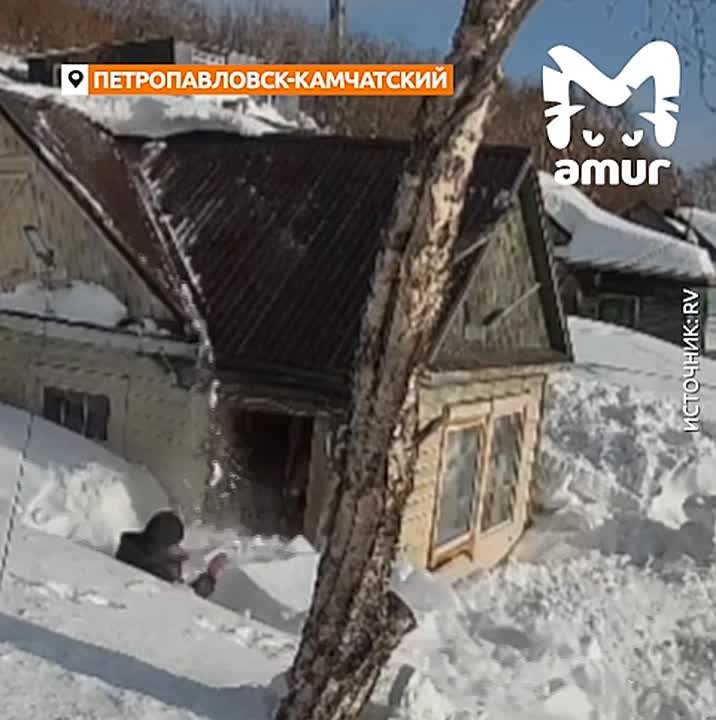Мужика чуть не накрыло снежной лавиной с крыши в Петропавловске-Камчатском. Момент — на видео.