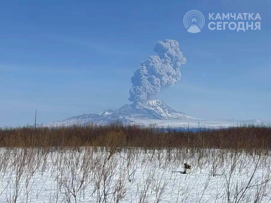Шивелуч снова напомнил о себе. Днём 12 марта вулкан выбросил столб пепла на высоту 8 километров над уровнем моря.