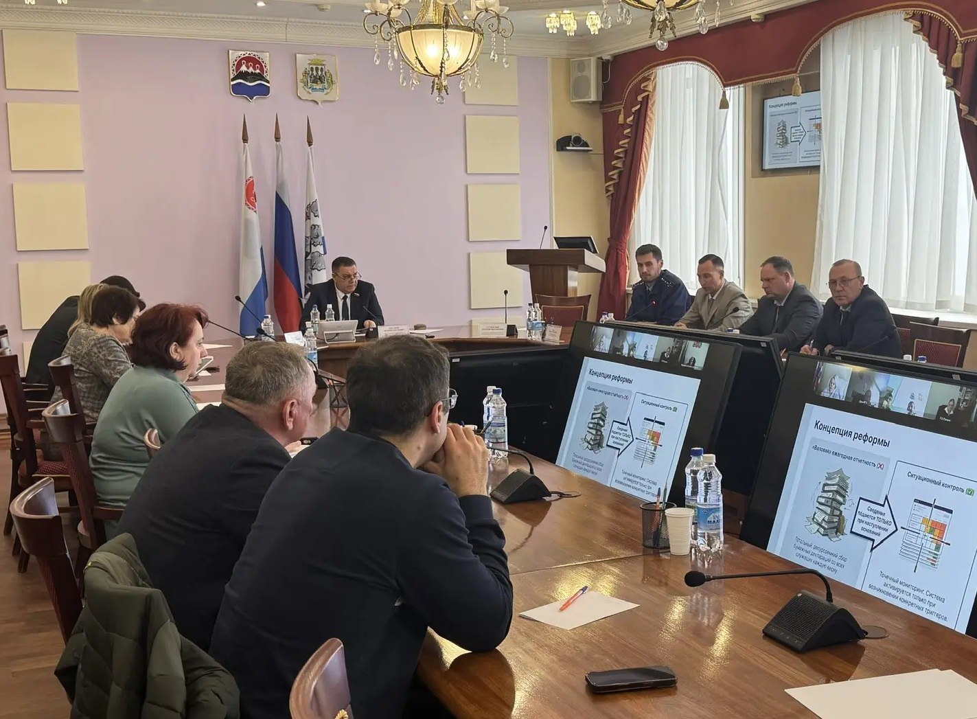 Совещание прошло под председательством Андрея Лиманова с участием депутатов, сотрудников аппарата и представителей прокуратуры. Благодаря видеосвязи, к обсуждению подключились администрации отдаленных районов края.