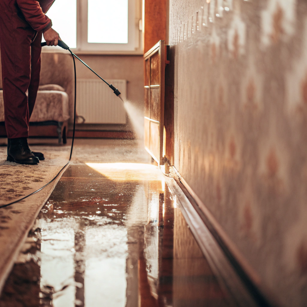 - Удаление последствий затопления: обработка поверхностей стен, пола и мебели;
