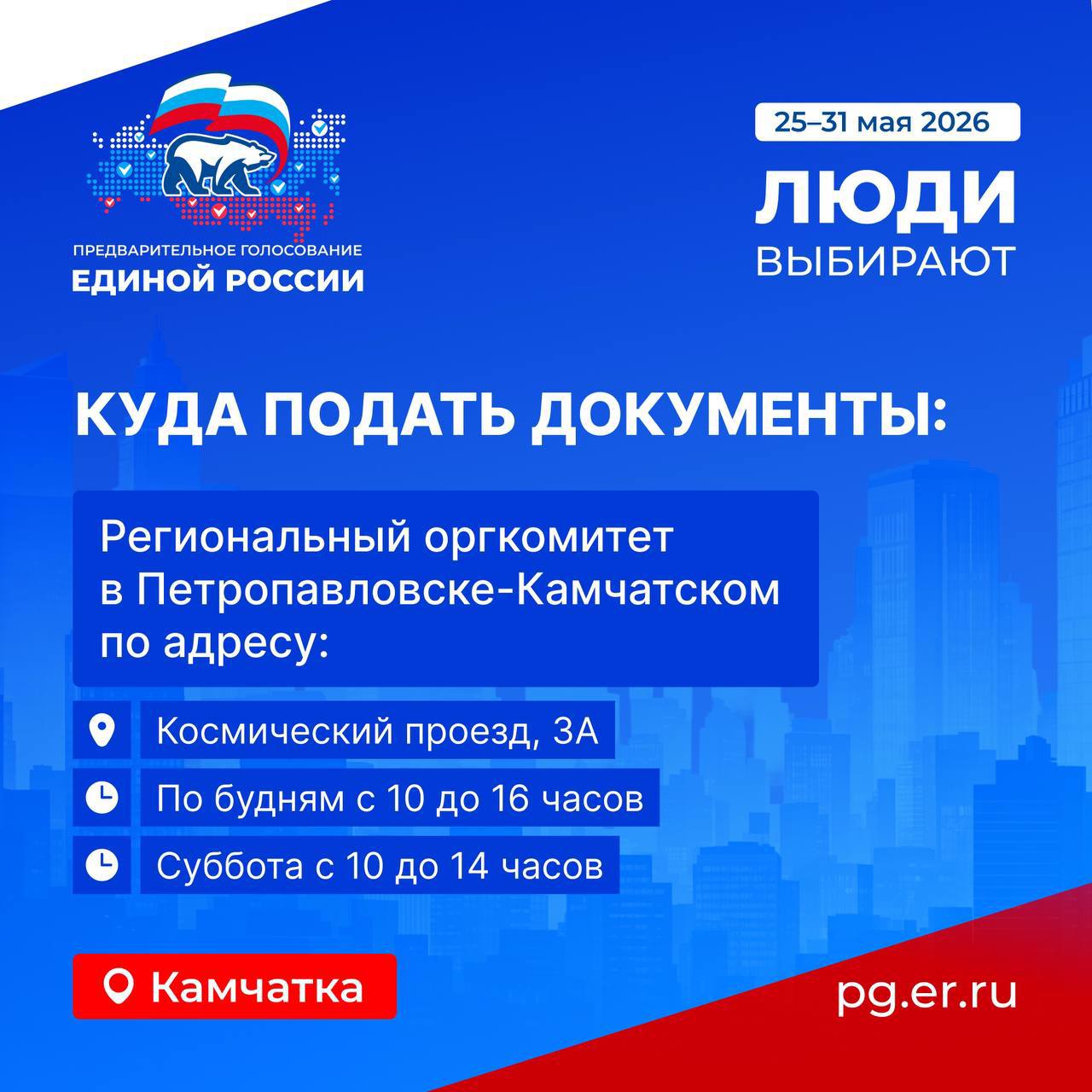 г. Петропавловск-Камчатский, Космический проезд, 3А по будням с 10:00 до 16:00, суббота с 10:00 до 14:00. Принять участие в народном голосовании смогут все жители Камчатки.