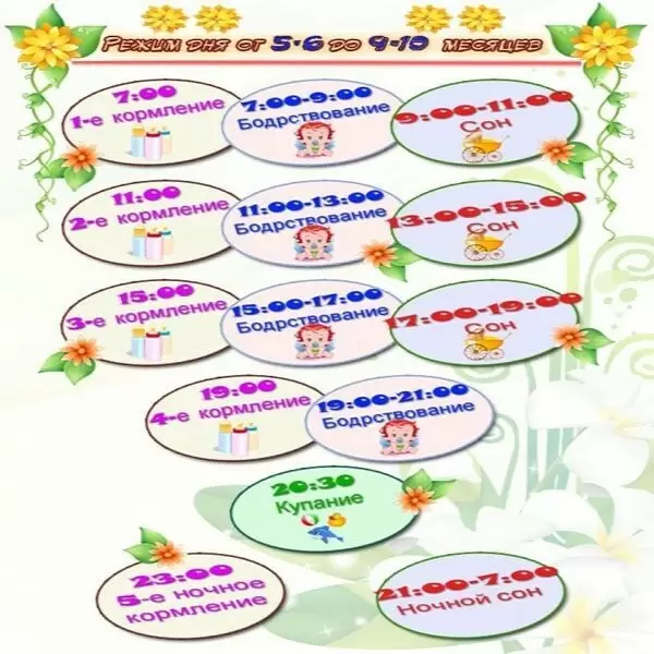 К шести месяцам интервал между кормлениями увеличивается до четырех часов, а количество приемов пищи сокращается до пяти в день благодаря введению прикорма. Это важно учитывать, так как "кормление" с твердой пищей занимает больше времени на переваривание, что может привести к отказам от еды и нарушению режима.