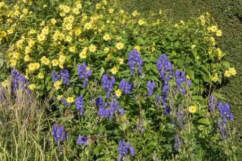 Этот многолетник (Aconitum carmichaelii) своим величественным ростом и фиолетовыми цветками завоевывает сердца садоводов. Аконит родом из Центрального Китая, зимостойкость его соответствует зонам 3-7. Он идеально подходит для создания эффектных массивов на заднем плане цветников.