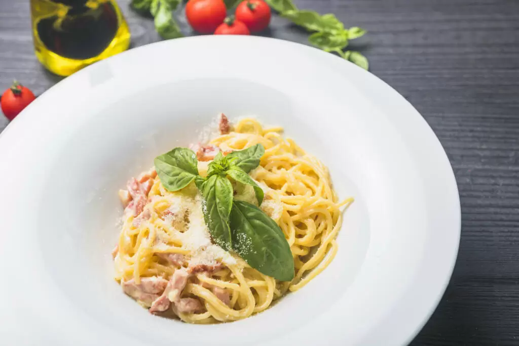 Ингредиенты остаются близкими к стандарту, но акцент смещён на доступность и комфорт приготовления. Бекон или панчетта добавляют структуру и соль, сливки дают мягкость, сыр завершает текстуру. Все шаги рассчитаны на спокойный темп и уверенность в результате.