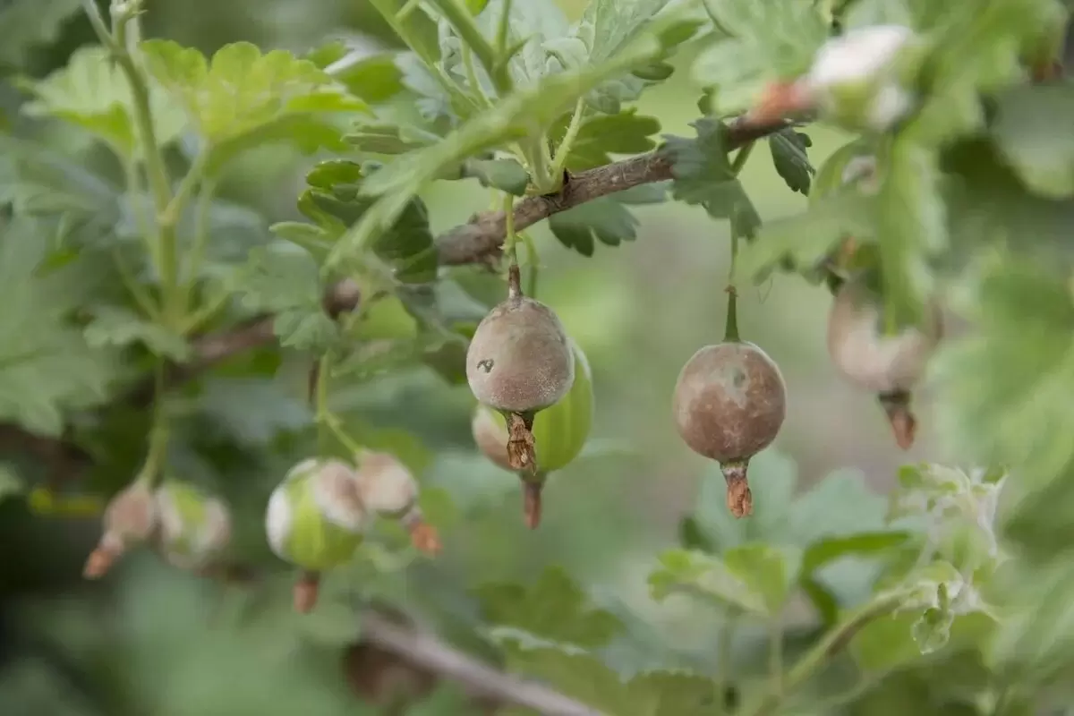 Мучнистая роса, или американская роса, – это грибковое заболевание, вызываемое грибом Sphaerotheca mors-uvae. Этот грибок ослабляет растения, проявляясь вскоре после цветения. Молодые листья, кончики побегов и незрелые ягоды покрываются белым рыхлым налётом, который на первый взгляд может показаться безобидным. Однако под этой видимостью скрывается серьёзная угроза.