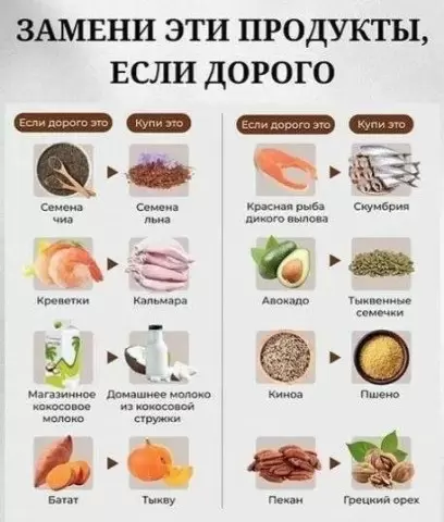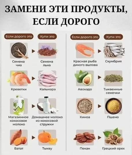 Рассмотрим несколько простых заменителей, которые могут обогатить рацион без ущерба для бюджета: