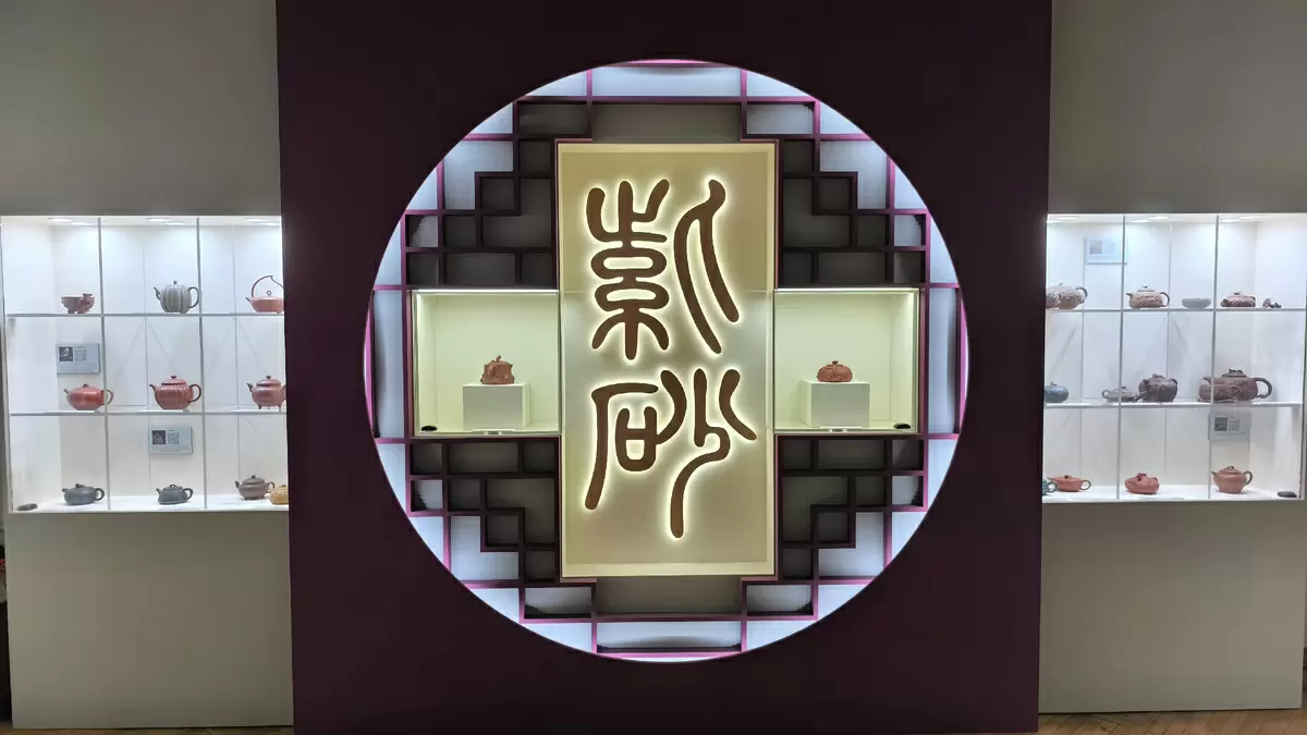 На выставке главенствуют чайники, каждый из которых является настоящим произведением искусства. Они искусно оформлены рельефами, миниатюрными фигурками и отражают богатство китайской мифологии. Символические сюжеты, такие как превращение рыбы в дракона, делают эти чайники уникальными.