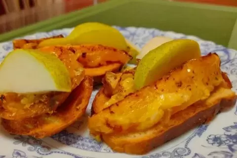 Готовое блюдо можно подавать на гренках, предварительно полив медом. Это придаст сладость и сбалансирует солоноватый вкус сыра. Грушу нарезают и добавляют к каждой порции, что делает подачу более изысканной. Такой кулинарный шедевр станет настоящим хит-парадом на вашем столе!