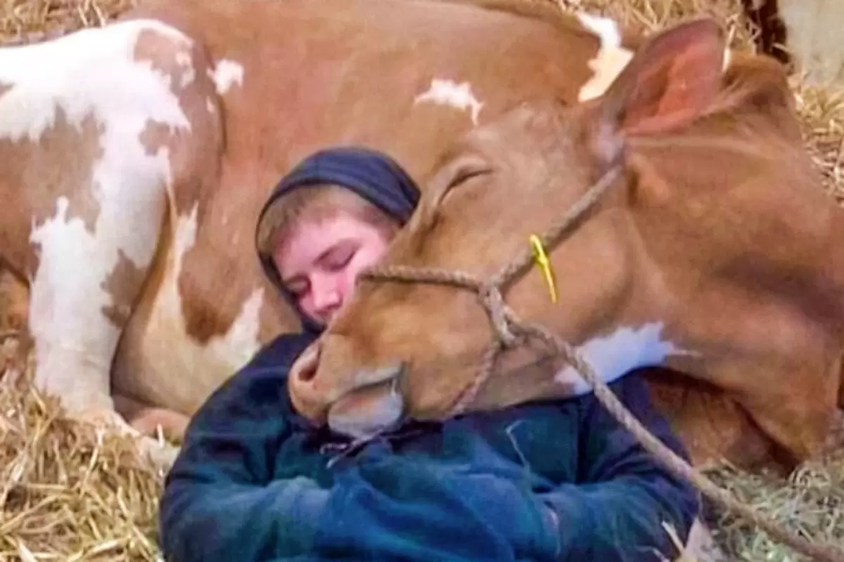 - Мальчик и корова: На фото запечатлен молодой парень, который провел всю ночь рядом с заболевшей коровой, которая стала не только источником молока, но и верным другом для его семьи.