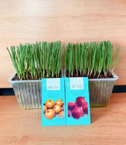 В этом сезоне на площадке представлены два сорта лука: «Соколик» и «Кондор». Каждый из них порадует различным цветом черешка и, соответственно, будущими луковицами. Это означает, что при достаточном уходе можно ожидать интересные вариации в урожае.