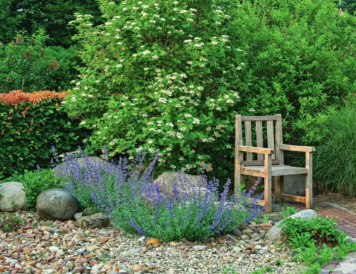 Умелое сочетание гравия с растениями может привести к эффектным результатам. К примеру, для современных зданий подойдет гравий спокойных тонов, а яркие многолетники могут добавить живости композиции. Среди удачных вариантов для каменистых участков можно выделить лаванду, котовник и перовскию. Такие растения акцентируют внимание и создают красивый контраст с гравийной отсыпкой.