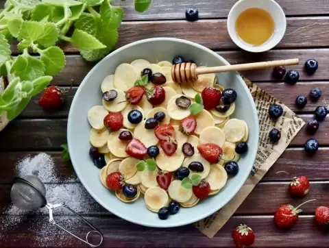 Перед подачей можно декорировать мини-оладьи ягодами, медом или сиропом. Они отлично подойдут как для завтрака, так и в качестве перекуса в любое время дня. Приятного аппетита!