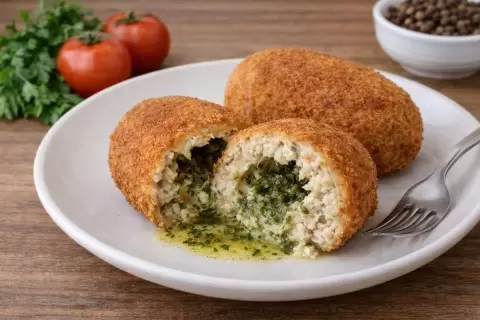 Эти котлеты по-киевски из фарша получаются удивительно сочными. Как только вы их разрежете, ароматное сливочное масло пропитывает куриное мясо, придавая ему невероятную нежность. Лучше всего подавать их горячими с картофельным пюре или свежими овощами.