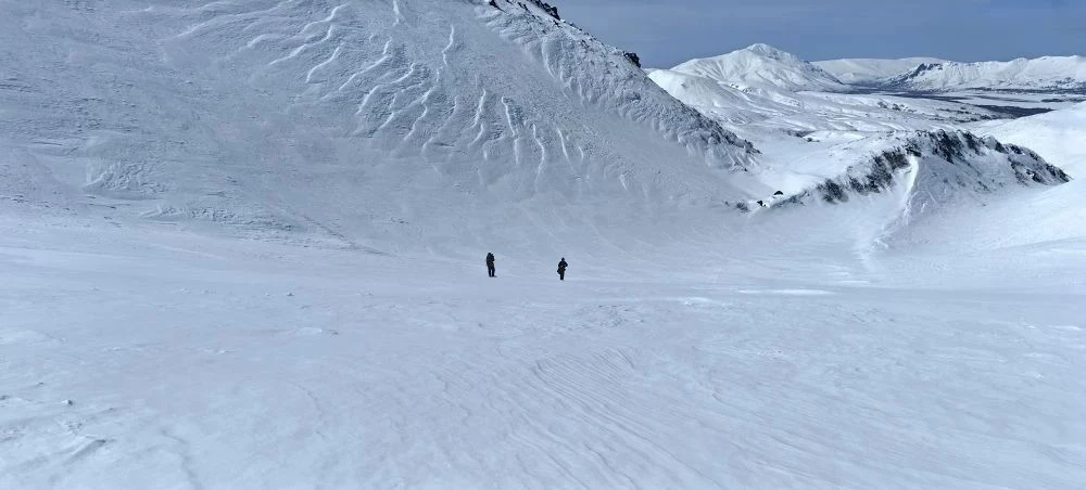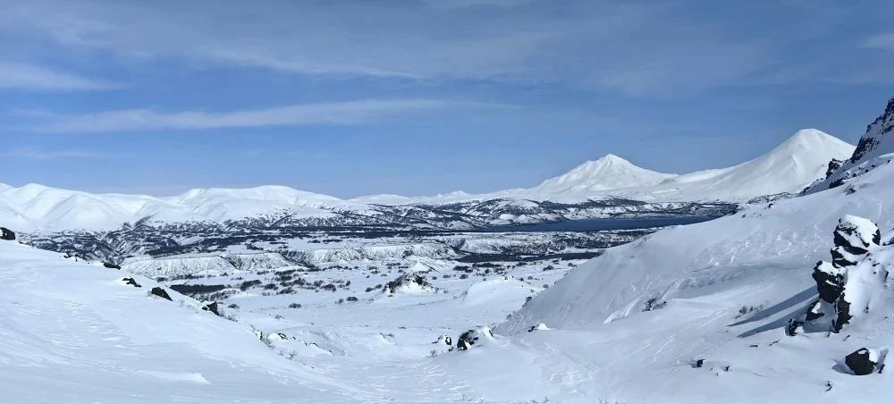 Если в Петропавловске-Камчатском уже вовсю таят сугробы, то в окрестностях вулкана Дикий Гребень всё ещё царит зима.