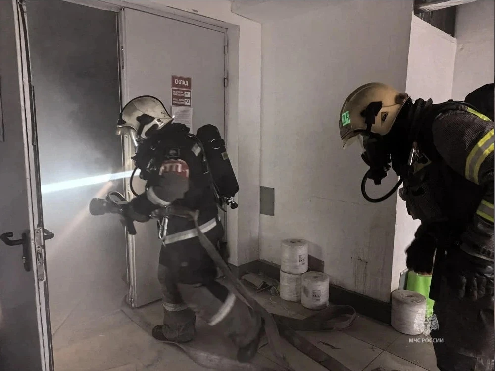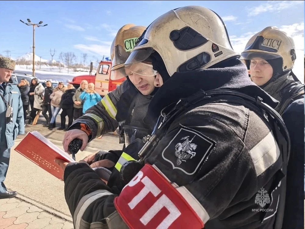 В ТРК на Вулканной прошло плановое пожарно-тактическое учение. По легенде, загорелся склад. Администрация эвакуировала людей и вызвала пожарных. Те приехали через пять минут, искали «пострадавших» в плотном дыму, использовали спецоборудование.