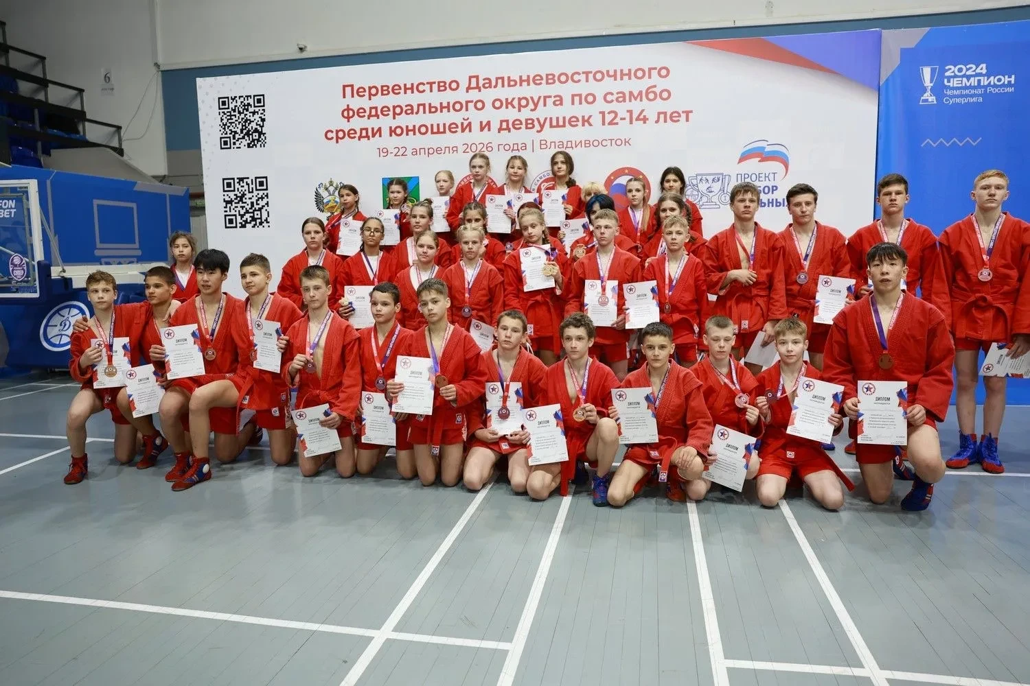 С 19 по 22 апреля в спортивном комплексе «Олимпиец» во Владивостоке прошло первенство Дальневосточного федерального округа по самбо среди юношей и девушек 12–14 лет. В турнире участвовали более 300 спортсменов из 10 регионов, в том числе сборная Камчатского края.