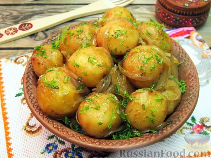- Рецепт молодой картошки, запеченной в пакете с луком. Это блюдо отличается удивительной простотой. Мягкий картофель с невероятным вкусом лука и приправы станет идеальным гарниром для любого основного блюда.