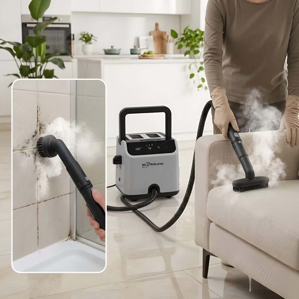 Паровая обработка, например, с помощью модели WidLanex GX-02, достигает температуры 120-140°C, что уничтожает грибок и стерилизует поверхность. Под давлением горячего пара грязь смывается с затирки, и швы становятся белоснежными. Более того, после такой обработки влага быстро испаряется, что создает неблагоприятные условия для повторного появления плесени.