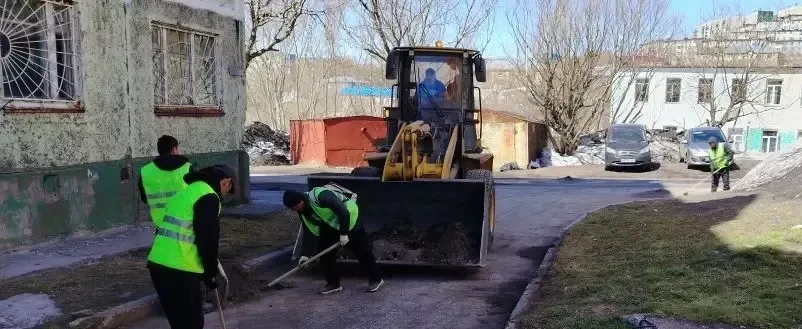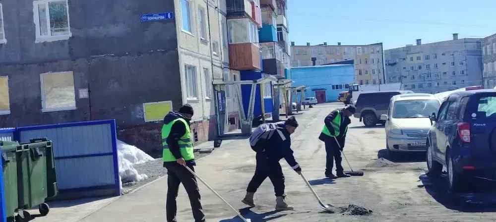 Сегодня бригады ручного труда убирали песок и мусор с пешеходных зон и откосов вдоль центральных дорог на ул. Лукашевского, ул. Приморская, ул. Арсеньева, ул. Уссурийская, ул. Попова, пр. Победы, ул. Зеркальная, ул. Озерновская коса.