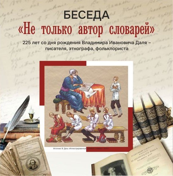 Однако Даль был не только автором словаря. В ходе беседы участники смогут познакомиться с малоизвестными страницами биографии писателя, узнать о его личной жизни.